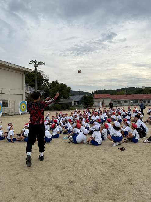 全校児童さんを対象に、前半はスキルセッション、後半3~6年生はタグラグビー試合、1年生と2年生は選手との力比べやラグビーリレーを行いました。ラグビーを通じて、仲間や道具の大切さ、ルールの大切さ、そしてスポーツの楽しさを体験いただきました。