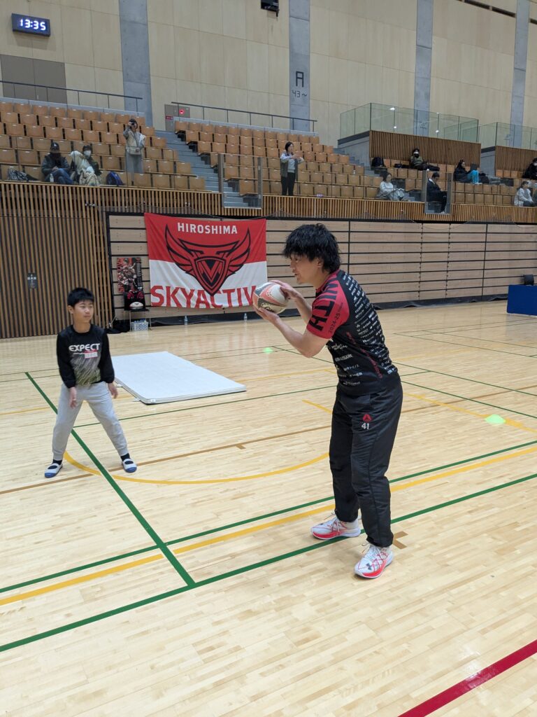 福山市の小学生100名を対象としたスポーツイベントにゲストチームとして参加しました。