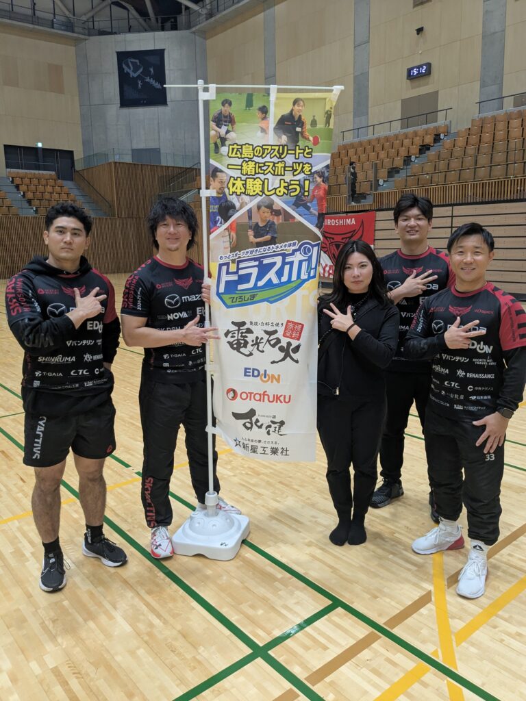 福山バッツさん(3人制バスケットボール)、中国電力ライシスさん(女子卓球)、ダイソー女子駅伝部さん、はつかいちサンブレイズさん(女子野球)と共に、スポーツ体験の時間を楽しむことができました。多様なスポーツを通じて、スポーツをもっと好きになってもらえると嬉しいです。