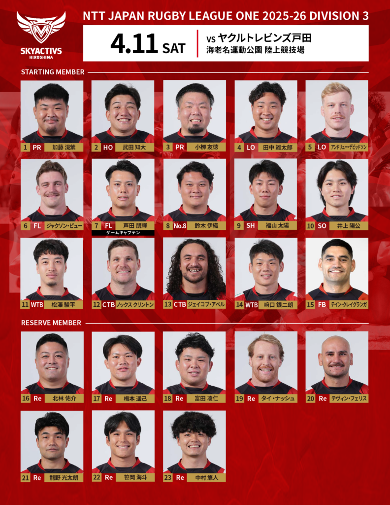 【メンバー発表】vsヤクルトレビンズ戸田